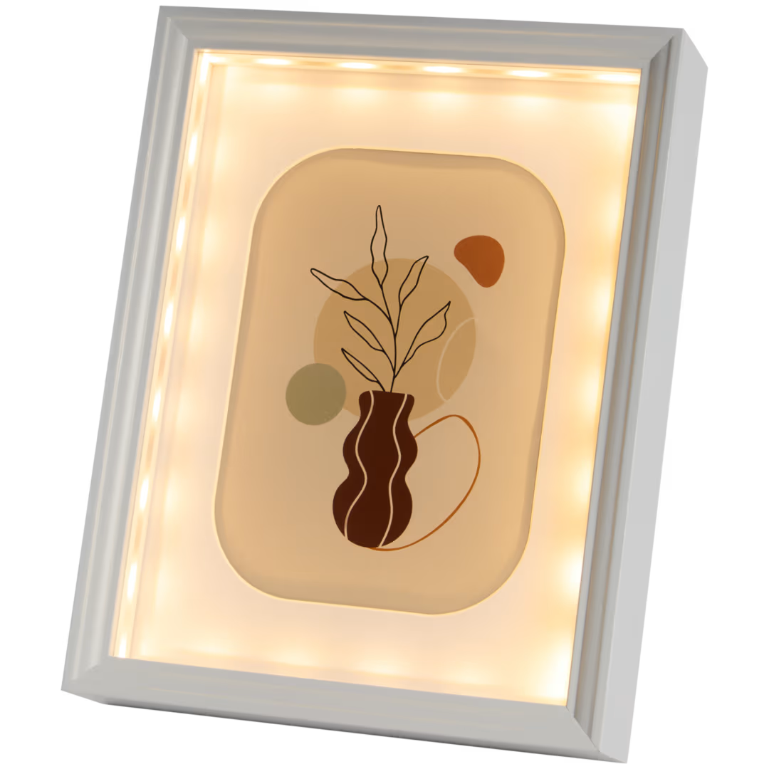 Faites briller votre photo avec ce cadre photo en bois avec éclairage LED.